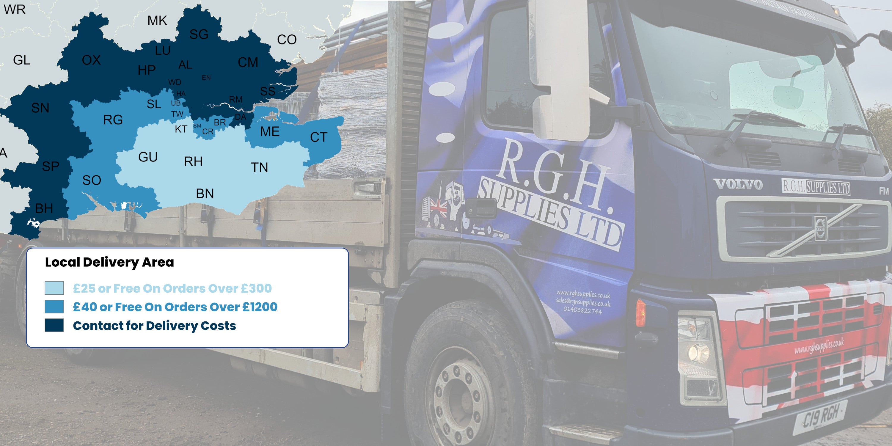 Deliveries with forklift offload across Sussex, Surrey, Kent and surrounding areas. Fast Reliable Service, large stocks of Agricultural and Domestic Fencing held.