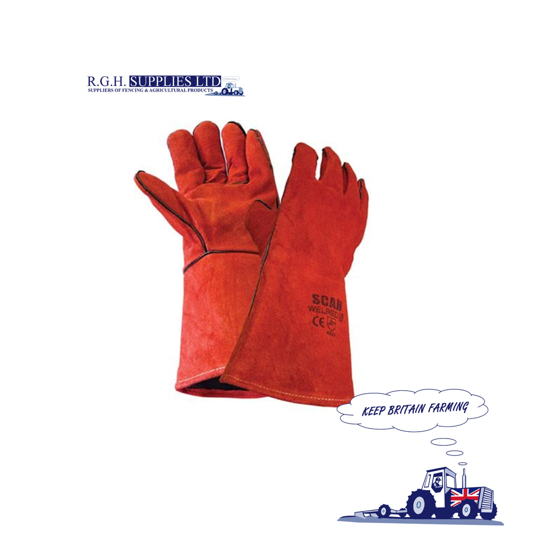 Scan SCA GLOWELRED Welder's Gauntlets Size 9 Large Cowsplit Leather