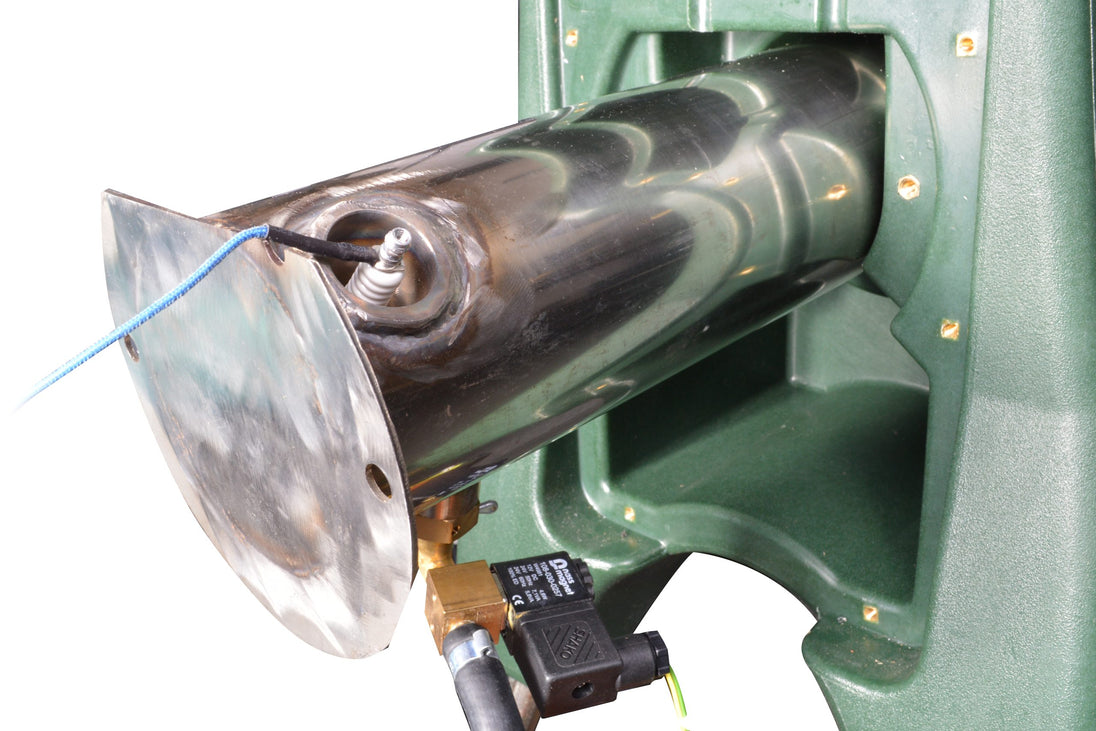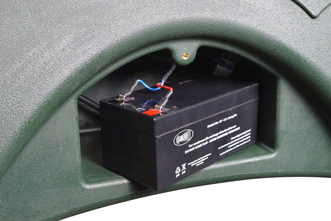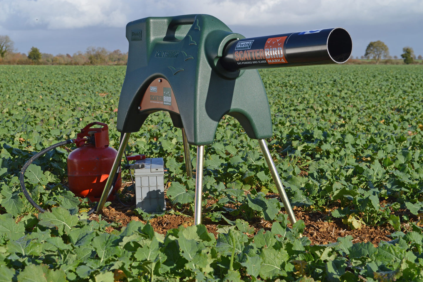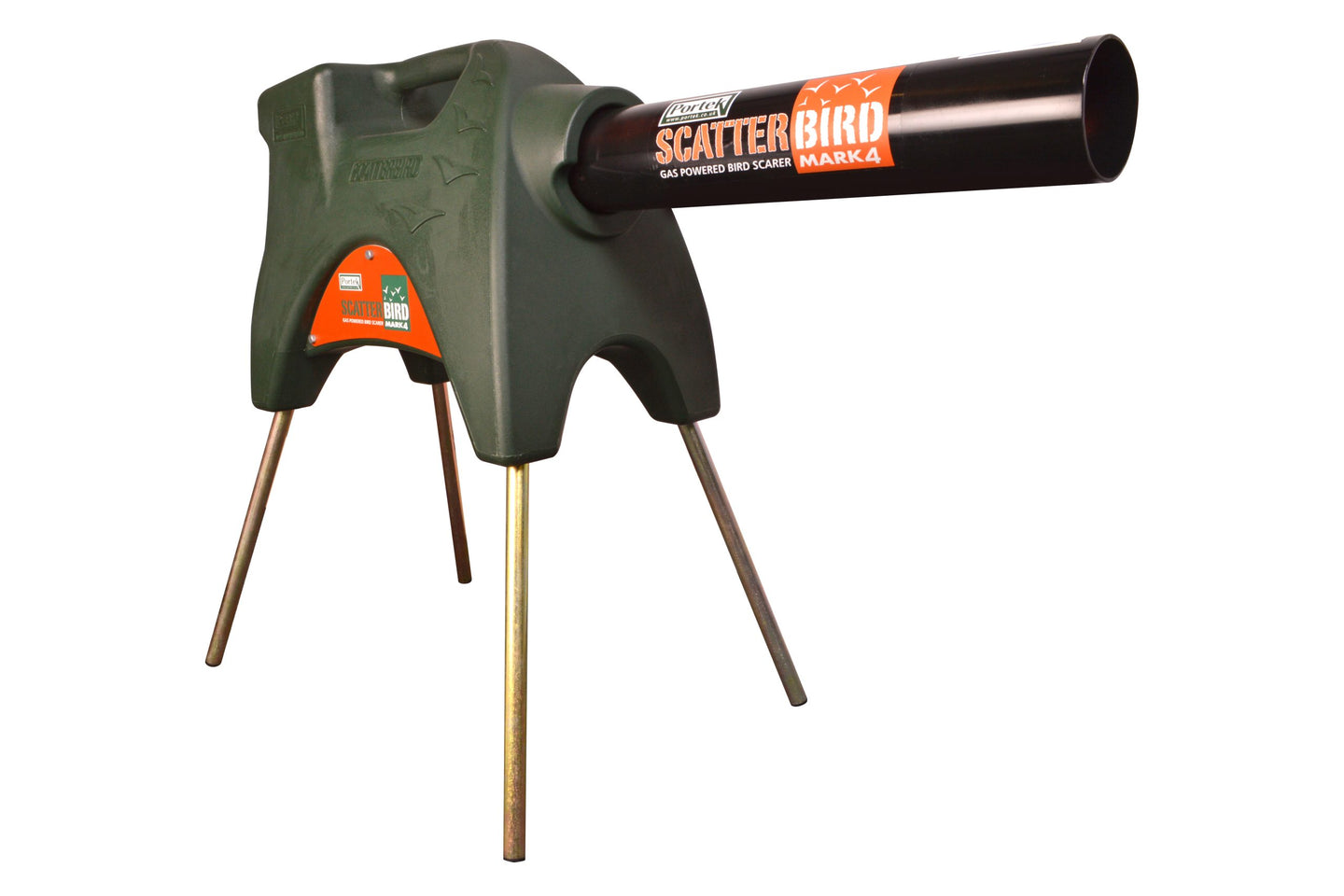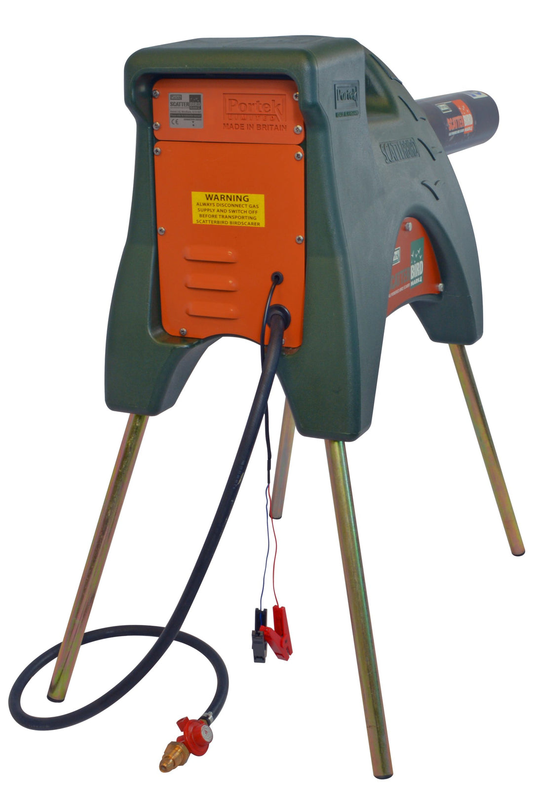 The Scatterbird MK4 is the next generation of gas powered bird scarers. Like it’s predecessor, the Scatterbird MK4 is a sturdy, purpose built bird scaring gas gun designed specifically to meet the needs of the farmer. The Scatterbird range has for many years set the industry standard for durability. The newly designed Scatterbird Mark 4 incorporates many innovative features, including the use of UV stabilised, impact resistant polypropylene for the casing, and improved performance with the added feature of controlling the Scatterbird MK4 by Bluetooth from an iOS or Android smart device. A superb all-weather piece of equipment, the Scatterbird MK4 provides excellent value for money and uniquely high performance. To operate the Scatterbird MK4 you will require a 12 volt battery and a cylinder of propane gas (any size of propane cylinder is suitable for use). Use of an optional internal 12 volt battery (not included) is recommended to keep the wiring away from vermin and prevent flood damage to the battery and wiring. The Scatterbird MK4’s plated steel legs included with the unit, raise it off the ground and allow the full force of the “BANG” to be heard with maximum effect.