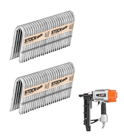 Stock-ade St400i Barbed Staples With Gas - 1000no Overview The ST400i barbed staples are 4mm/9ga in diameter and are recommended to be used for rural livestock fencing, medium mesh, heavy mesh and heavy woven fencing. It is also great for highway boundary fencing and,...Regular price £92.99Regular price £92.99