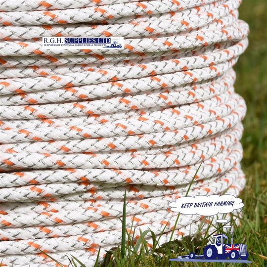 Sale -20%        Agrifence Maxicord Orange and White Braided Rope 500M Electric Fence 500M Agrifence maxicord braided electric fencing rope. Very safe for your animals with a low breaking strength of only 225kg and a smooth contact surface. This premium braided rope has a soft core which allows some...Sale price £179.95Regular price £225.60Sale price £179.95Regular price £225.60