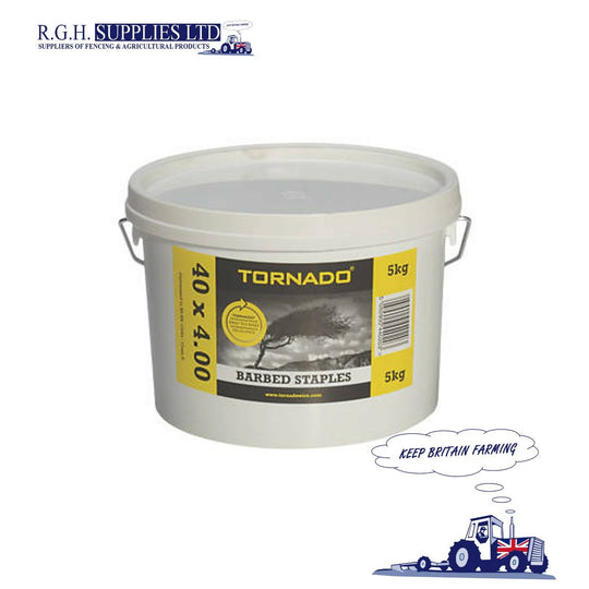 5kg Tornado Barbed Fencing Staples 40/30mm - Stockfence Netting Wire Fasteners 5kg Tornado Barbed Fencing Staples Barbed staples are a popular Tornado product. Used to secure fence netting or lines of plain or barbed wire to fence posts. They have 2 key features to ensure optimal performance:Slice...Regular price £34.95Regular price £34.95