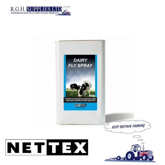 Nettex Dairy Fly Spray - 4.5 litre - Very High Quality Product Insecticide for professional use against flies, midges, wasps, gnats, mosquitoes and other flying insects Ready to use contact killer Permethrin based, Dairy Fly Spray...Regular price £23.50Regular price £23.50 -
