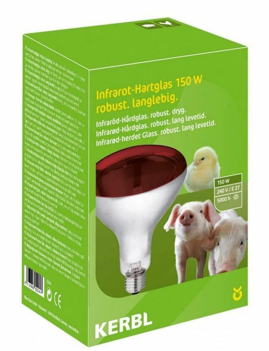 Kerbl Heat Lamp 150W Red Cap-Base: E27 Bulb Material: Hard Glass Bulb Finish: Red Normal Lifetime 5000 hr Lamp Wattage: 150 W Voltage 230-240 VRegular price From £15.00Regular price From £15.00 -