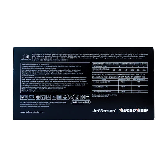 A workers’ hands are the real tools of the trade, however it’s the one set of tools that cannot be fixed or replaced when they don’t get the proper protection. The Jefferson Gecko Grip Professional Nitrile...Regular price £7.50Regular price £7.50 -