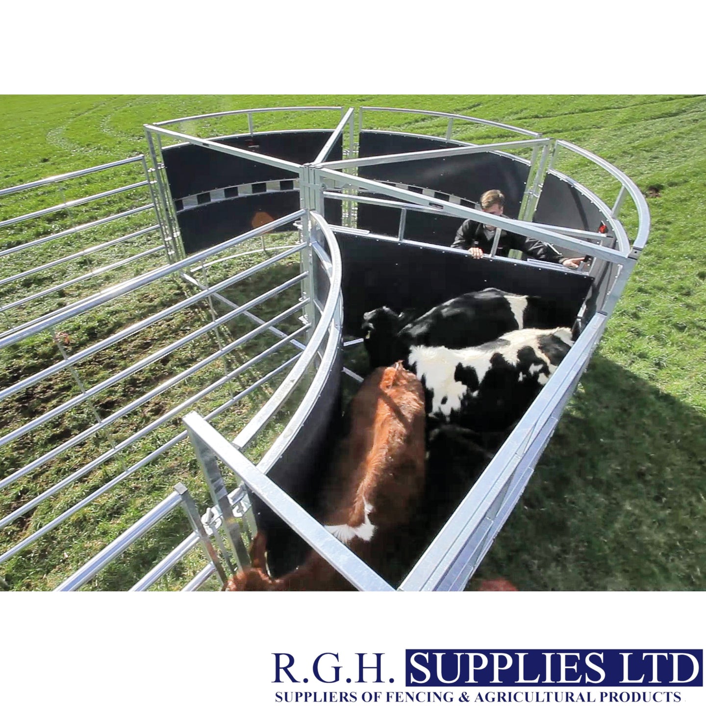 The Suporhandler offers the user a quick and convenient way to set up a permanent or portable 180 degree cattle forcing circle.