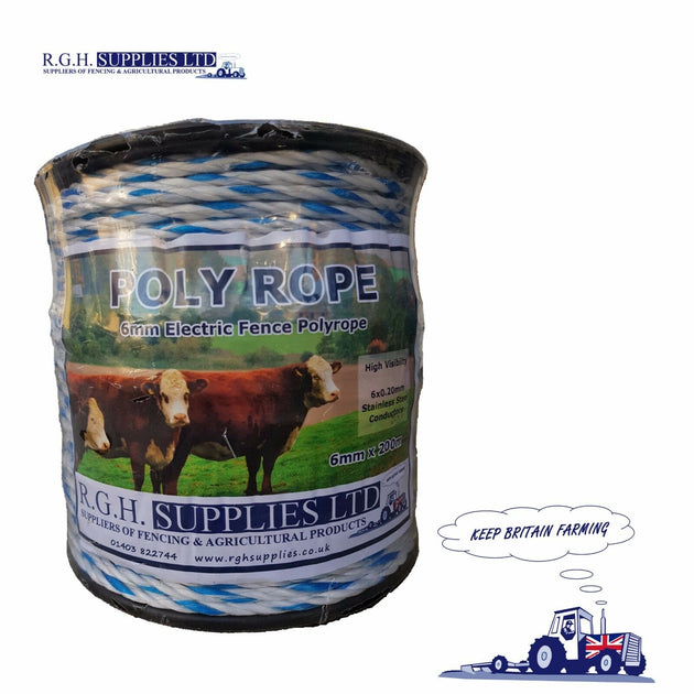 6MM Blue and White Polyrope - 200m Roll Electric Fencing Horse Paddock 6x0.20mm