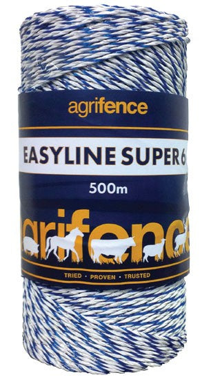 Agrifence 250M Easyline Super 6 White/Blue Electric Fencing Quality Polywire
