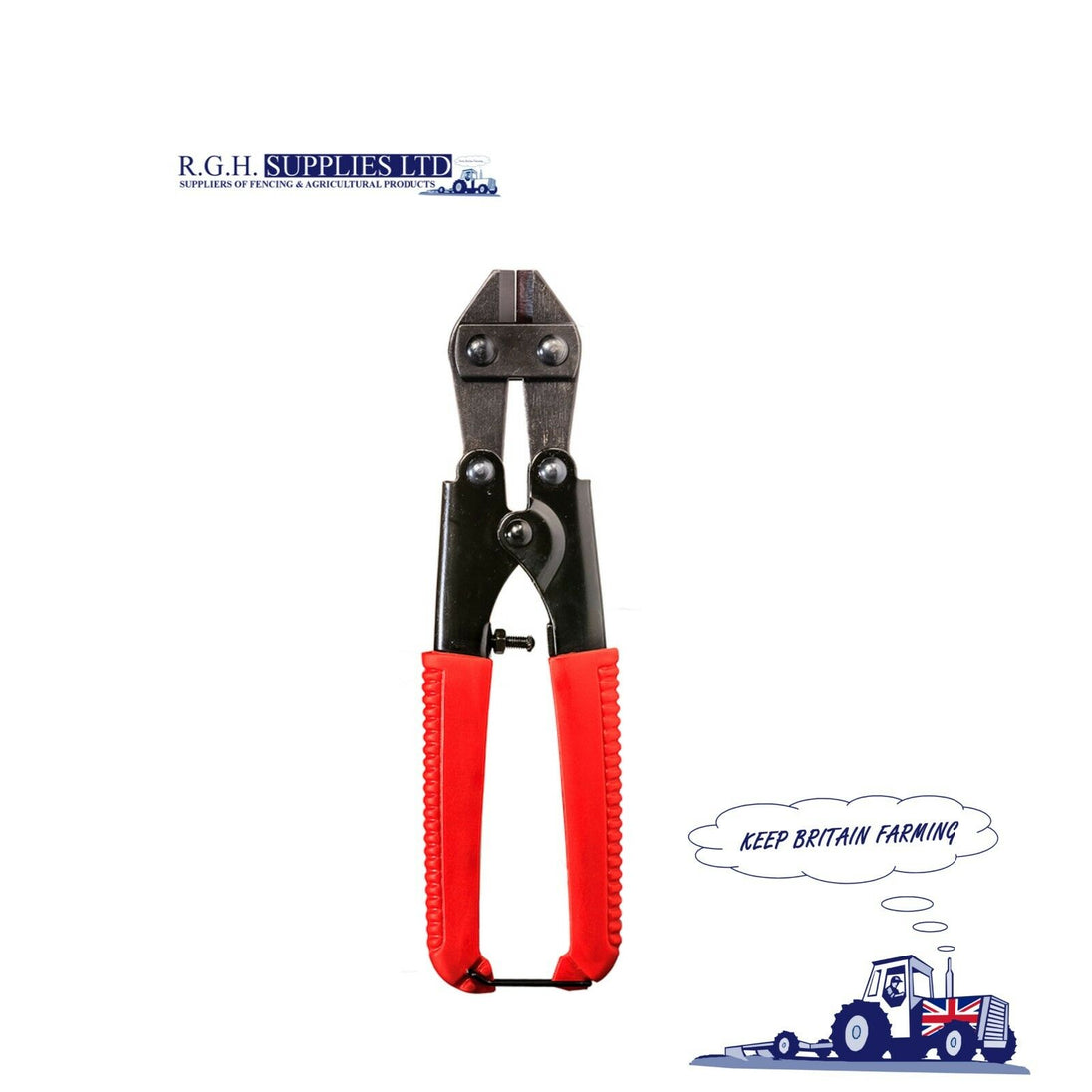 Lever action and hardened cutting edges to cut 2.5mm high tensile wire.