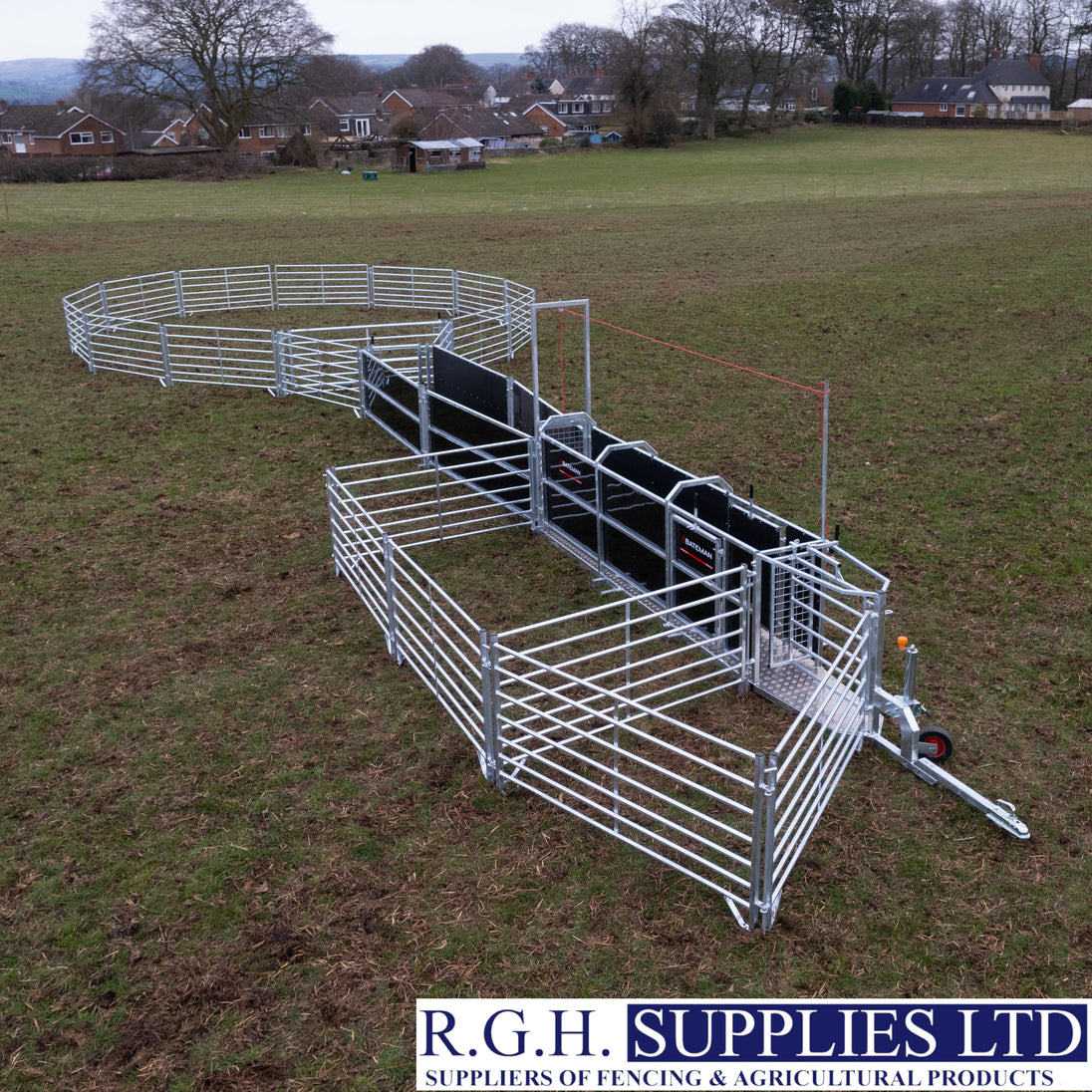 It can handle up to 250 sheep, and includes twenty 6ft hurdles with skids.