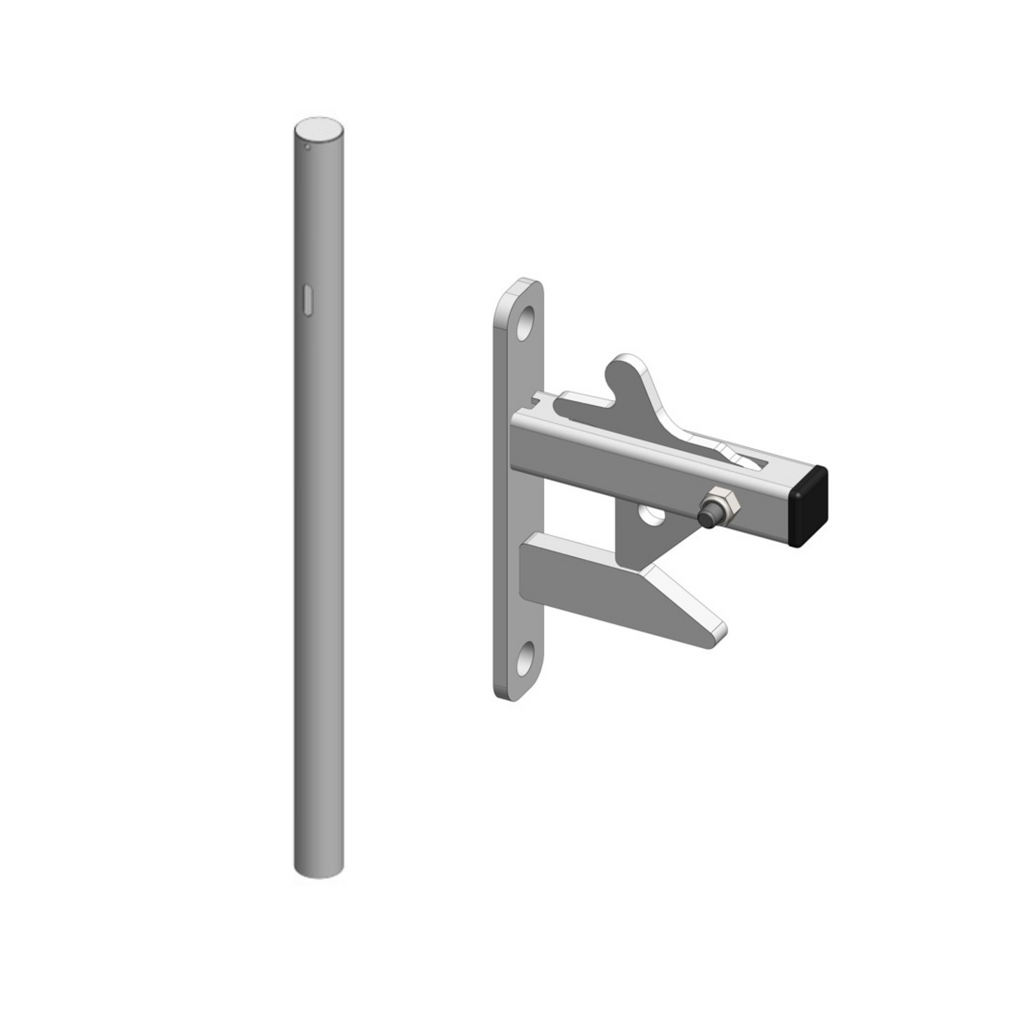 Featuring a bolt on auto catch 305mm from the top of the post to suit cranked or double leg strikers. It will also work with sliding bolt gates.