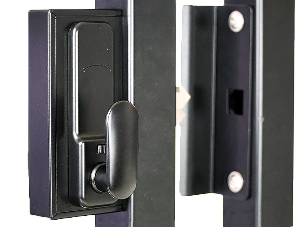 - Hold-back function – Available with the single-sided version only. On the back of the lock is a button to hold the latch in an open position.