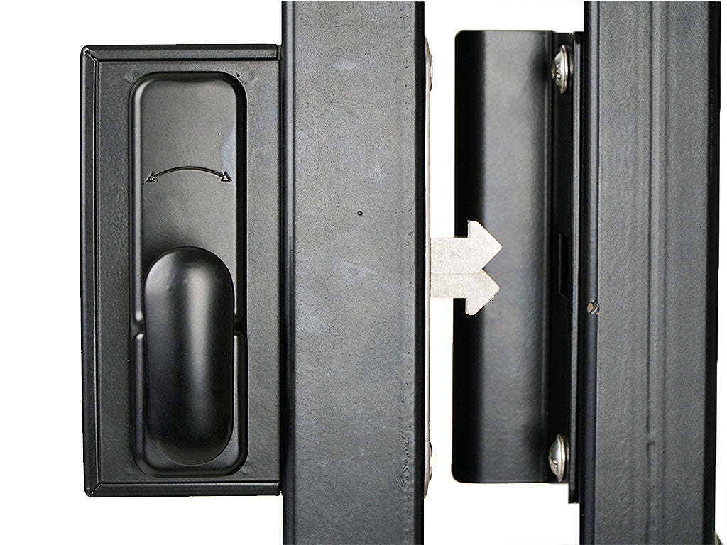 - Auto-latching – When you slide the gate closed the latch arms automatically catch and secure into the keep.