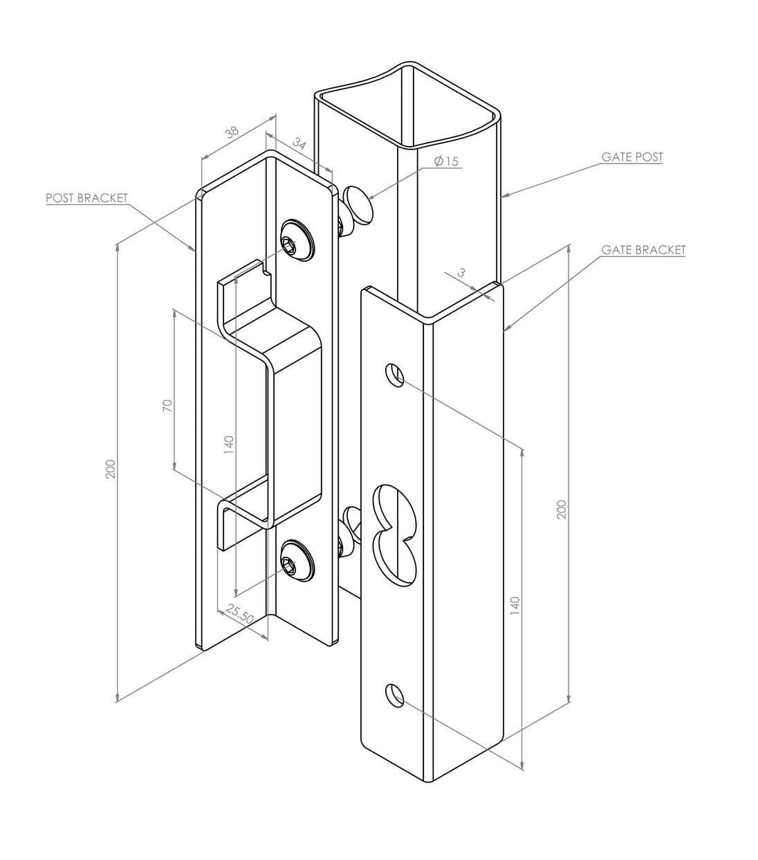- Easy to fit – Simple tighten the expanding fasteners to fix to the gate post