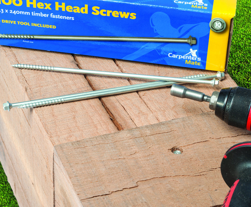 Carpenters mate have a range of Hex Head Screws made from carbon steel, are available in a variety of specific lengths to accommodate UK’s timber sizing and can be used in almost any timber application.