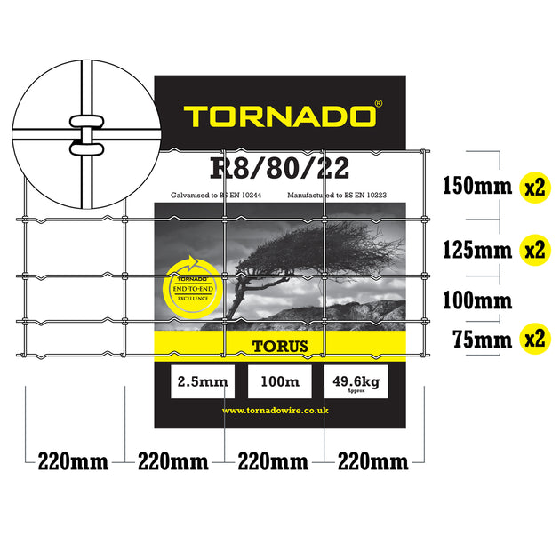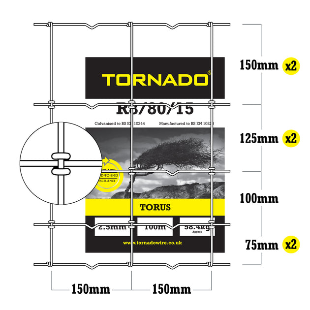 Tornado Wire 100M Rolls of C8/80/15 Mild Steel Stockfence Netting Fencing
