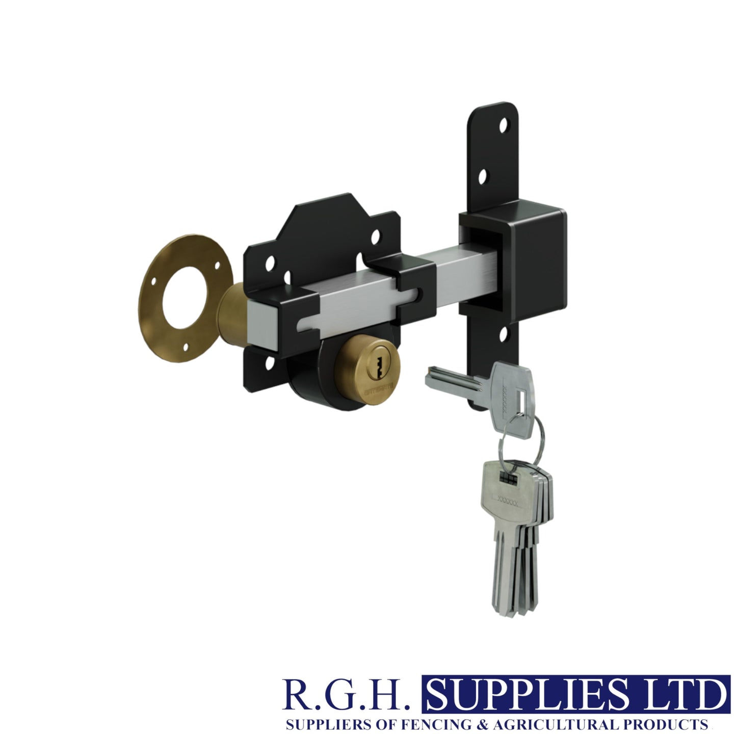 This Premium Long Throw Lock by GATEMATE® has a 6 pin lock barrel, double locking, and a stainless steel shoot, making it a great locking choice. This lock comes with 5 keys, 28mm drill bit and includes all fixings required, this lock is suitable for 70mm doors and gates, and comes in a stainless steel or black finish.