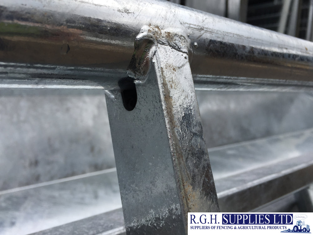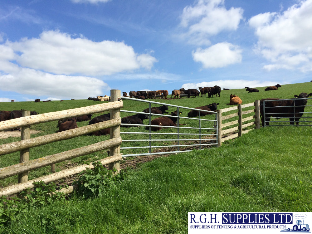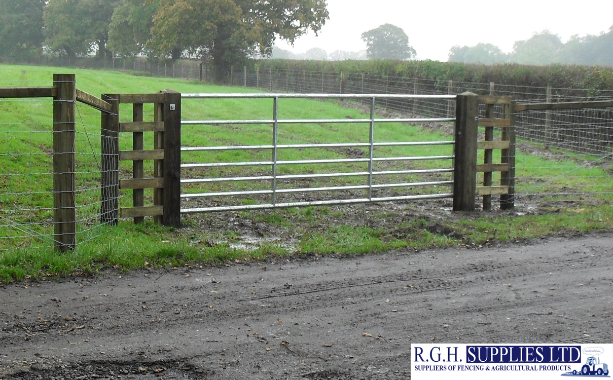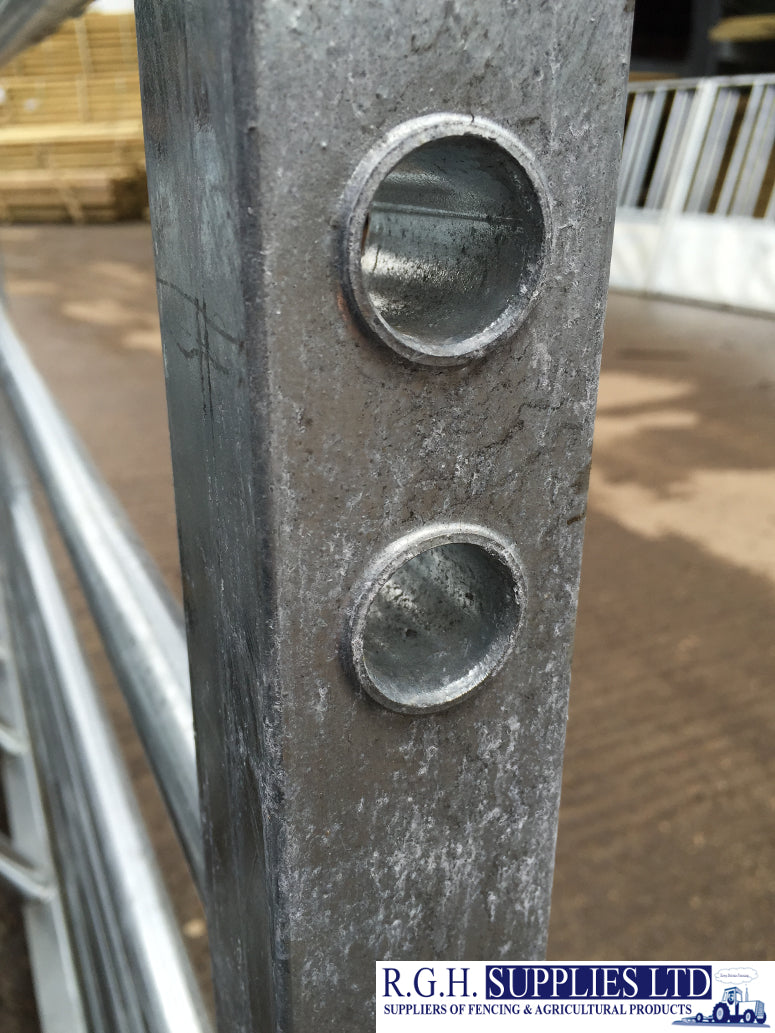 A seven bar metal gate 1145mm high, complete with box section braces welded to the gate, box hang stile and sleeved for 3/4'' gate eyes.