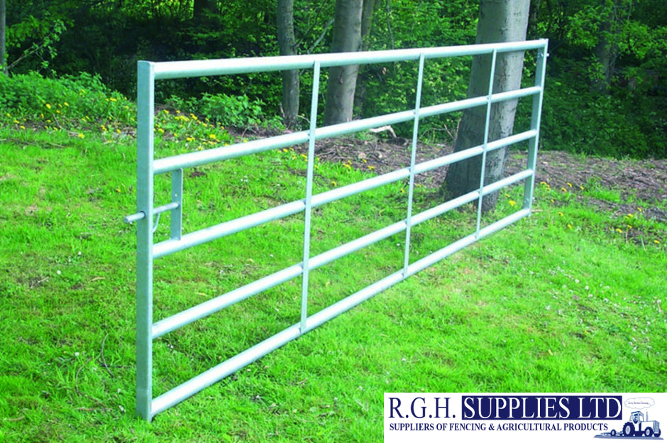 A 5 bar metal gate 1145mm high, complete with flat section braces welded to the gate, box hang stiles and sleeved for 3/4'' gate eyes