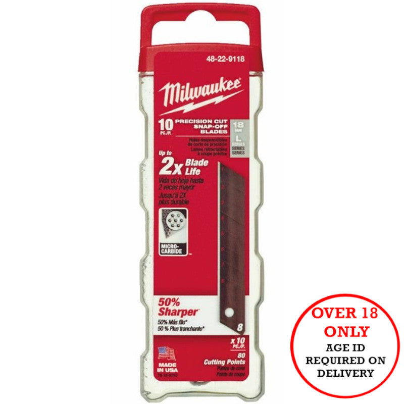 Milwaukee® Precision Snap-Off Knife Blades are designed to maximise cutting performance and durability in most common jobsite materials. Milwaukee® snap-off knife blades are engineered to fit Milwaukee® and most standard snap-off knives.