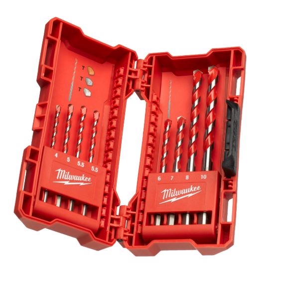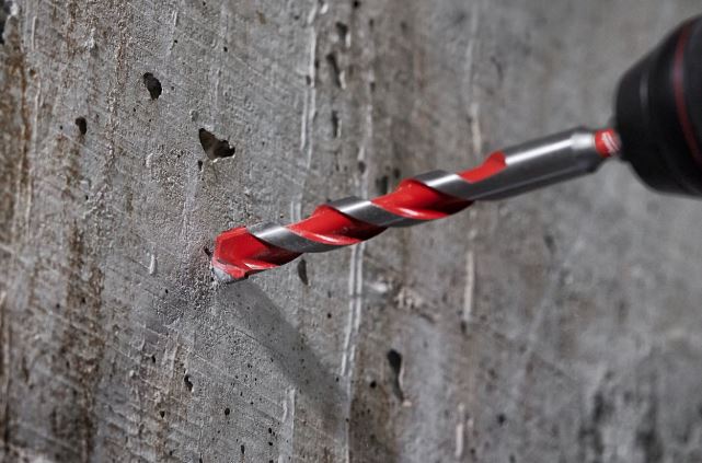 - Tungsten carbide tipped (TCT) drill bits allow drilling into concrete, aerated concrete blocks, masonry, slate and granite.