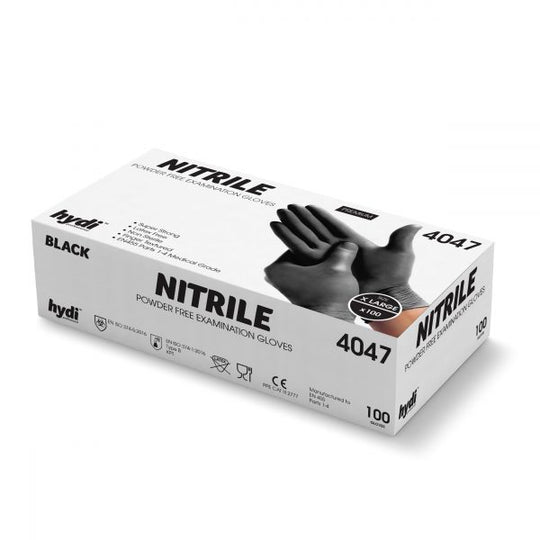Hydi Powder Free Black Nitrile Gloves EN455 EN374