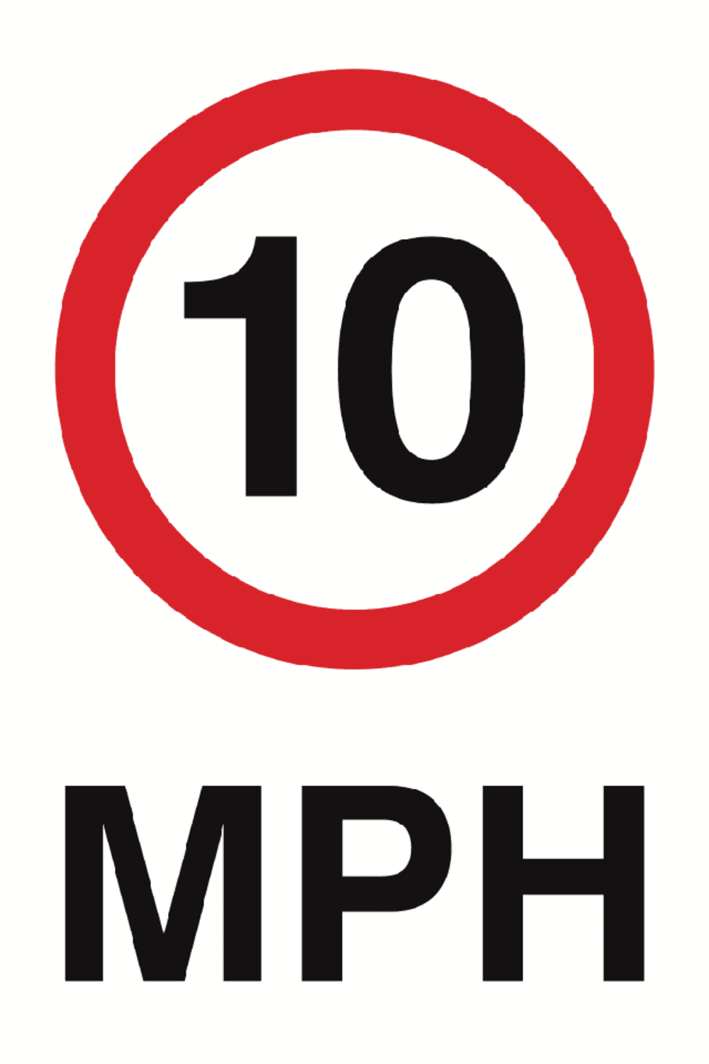This 10mph sign is used to inform road users that they should not exceed a 10mph speed limit in this area. Designed to be used on private roads and estates, where a low speed limit would be beneficial to safety. Designed for use outside, it is fully waterproof.