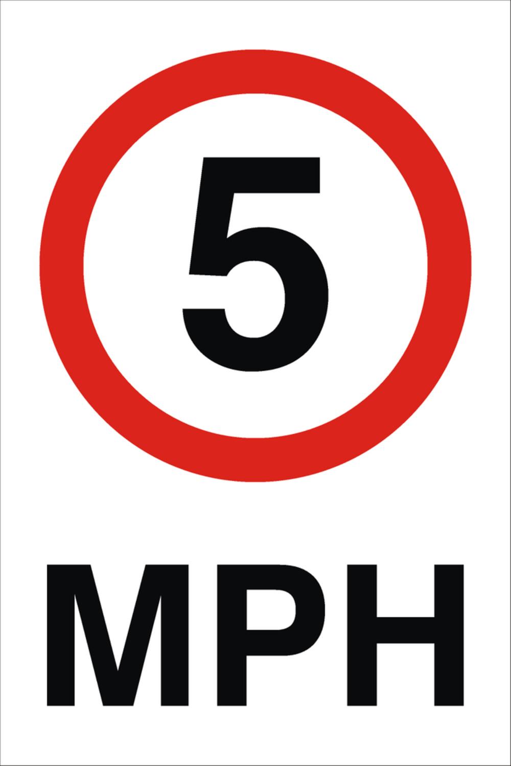 This 5mph sign is used to inform road users that they should not exceed a 10mph speed limit in this area. Designed to be used on private roads and estates, where a low speed limit would be beneficial to safety. Designed for use outside, it is fully waterproof.