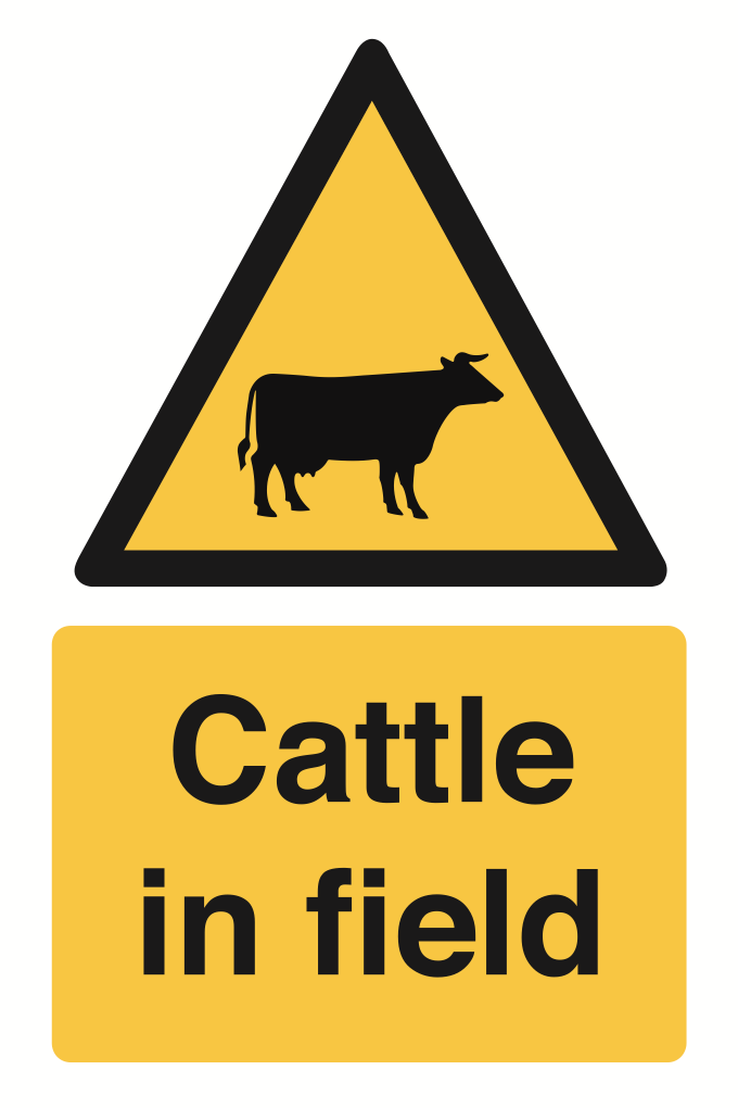 This Cattle in Field Sign is perfect for use as a warning sign in the agricultural industry on farms or in fields. Designed to be used outside, it is fully waterproof and is used to inform and warn, employees, members of the public and visitors of a potential danger of cattle in the field. The Health and Safety (Safety Signs and Signals) Regulations 1996, recommend that where a risk cannot be completely removed a suitable warning sign should be displayed to warn people of a possible danger.