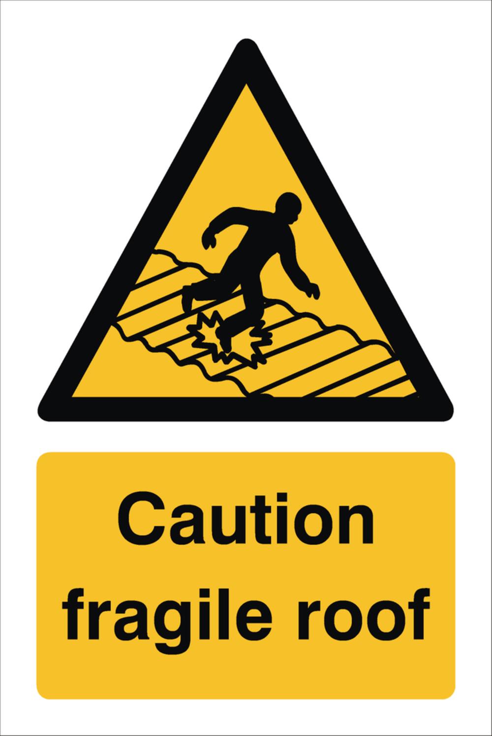 This Caution Fragile Roof Sign is perfect for use as a warning sign in the agricultural industry, farms, factories, industrial buildings or other premises with fragile roofs. Designed to be used outside it is fully waterproof and is used to inform and warn, employees, tradesmen and many others of a potential danger of a roof that may pose a hazard if walked upon. The Health and Safety (Safety Signs and Signals) Regulations 1996, recommend that where a risk cannot be completely removed a suitable warning sign should be displayed to warn people of a possible danger.