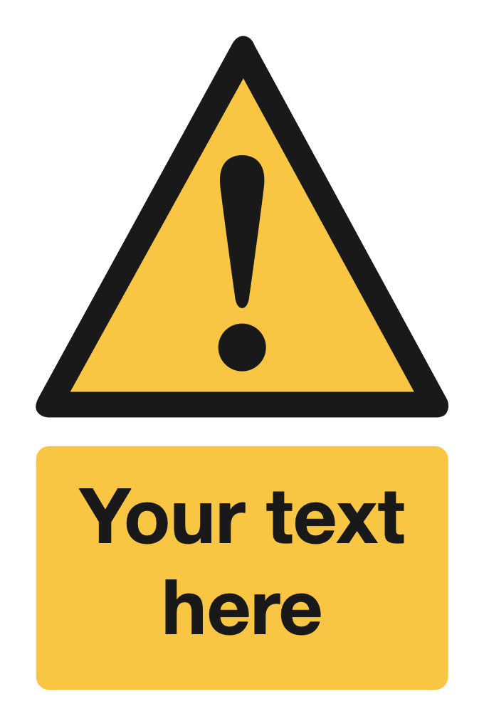 The Exclamation Mark Your Text Here Sign is designed to highlight cautionary messages with your own custom text, making it ideal for various safety and warning needs.