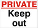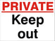 Private Keep Out Sign 120x360x3mm or 360x480x3mm Rigid Plastic
