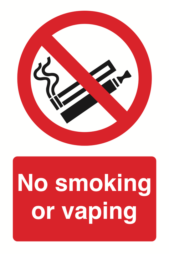 No Smoking or Vaping Sign 240x360x3mm Rigid Plastic