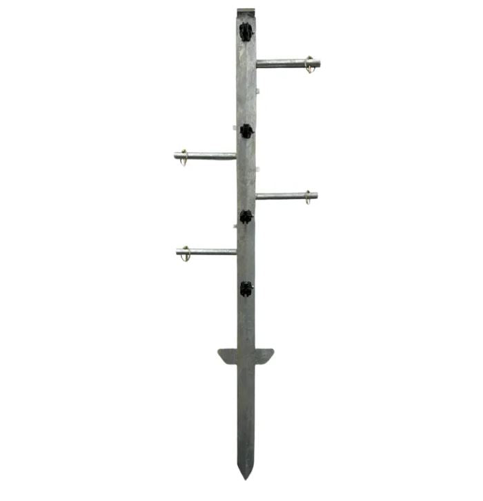 NEW from Rappa: Heavy-duty four-line reel post for use with Rappa Winder fencing machines to end your electric fence and help keep the wire taut. Features new bolt on/off interchangeable v-slot insulators. For use with Rappa machine fencing reels.
