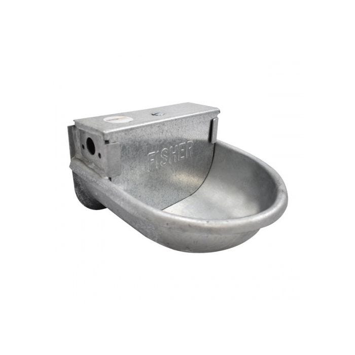 Drinking bowl. Heavy gauge steel, galvanised after manufacture. Finished with no sharp edges or corners to protect your animals. Strong and durable valve assembly, best used via a header tank. Fitted with brass valve.