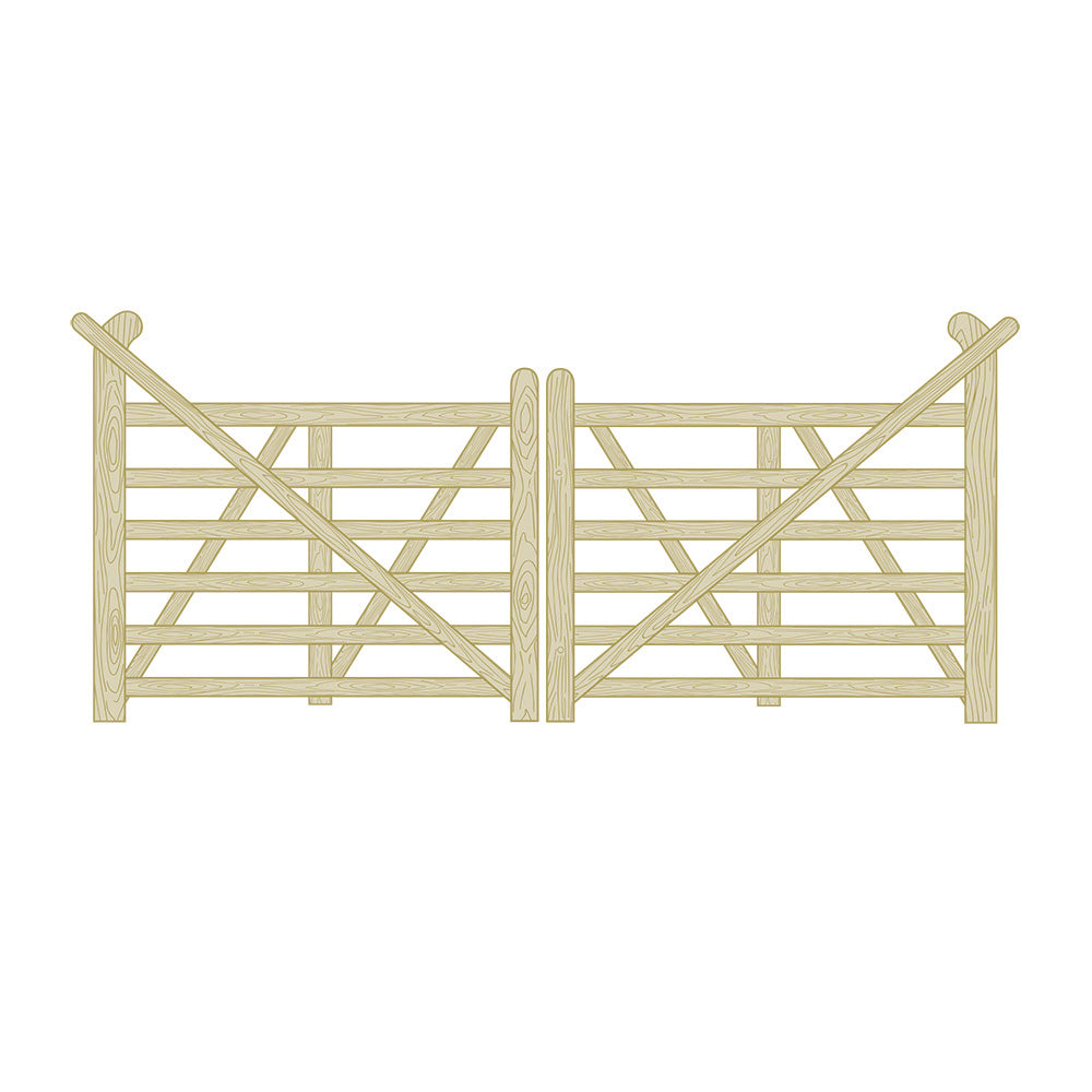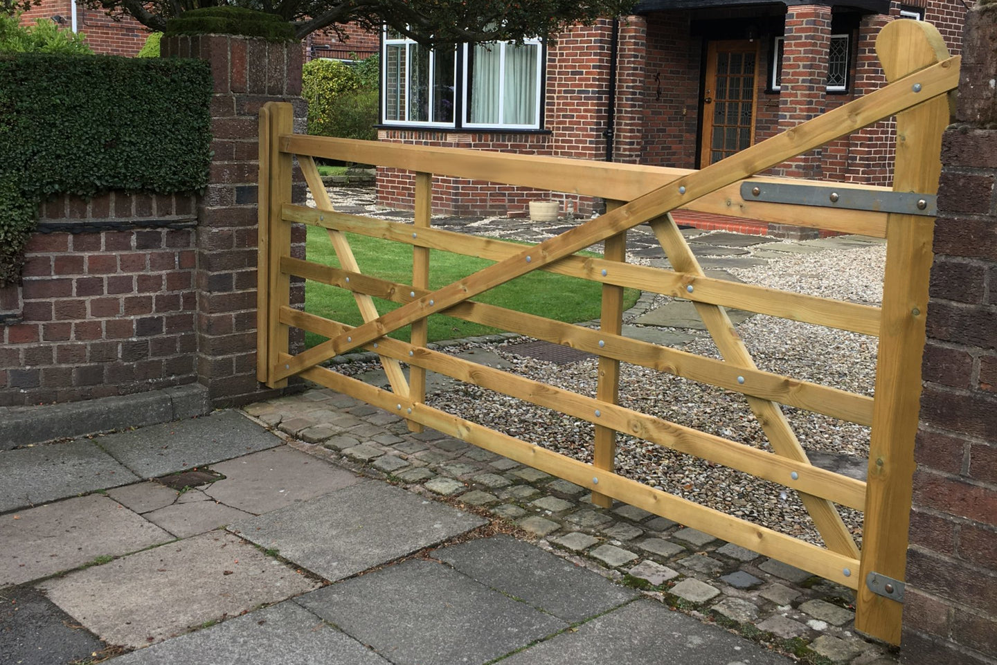 Traditional 5 bar diamond braced gates featuring a tapered top bar, heavy hanging stile with mortise and tenon joints to create a super strong and durable gate.