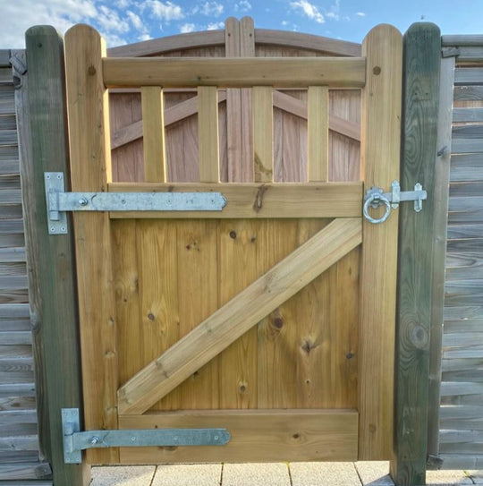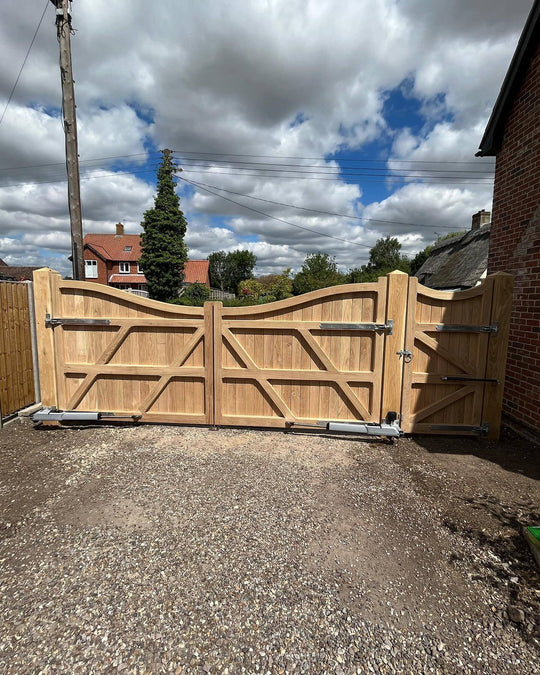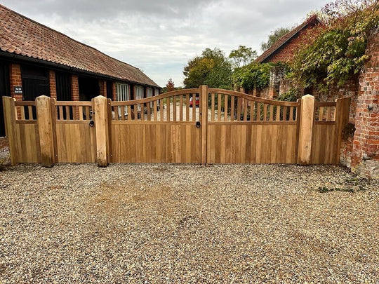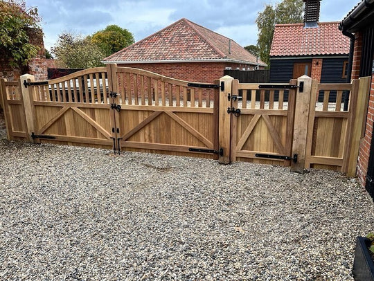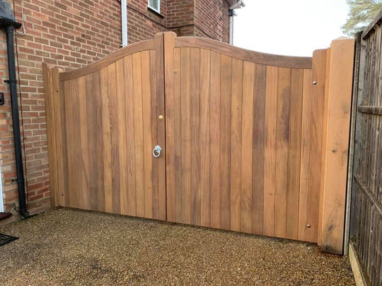 Upgrade your entrance with our handcrafted Solid Curved (Convex) Top Iroko TGV Gates. Made in the UK for both durability and elegance, these gates are available in heights of 1.2m to 2.1m and widths of 2.1m...Regular price From £4,110.00Regular price From £4,110.00 -