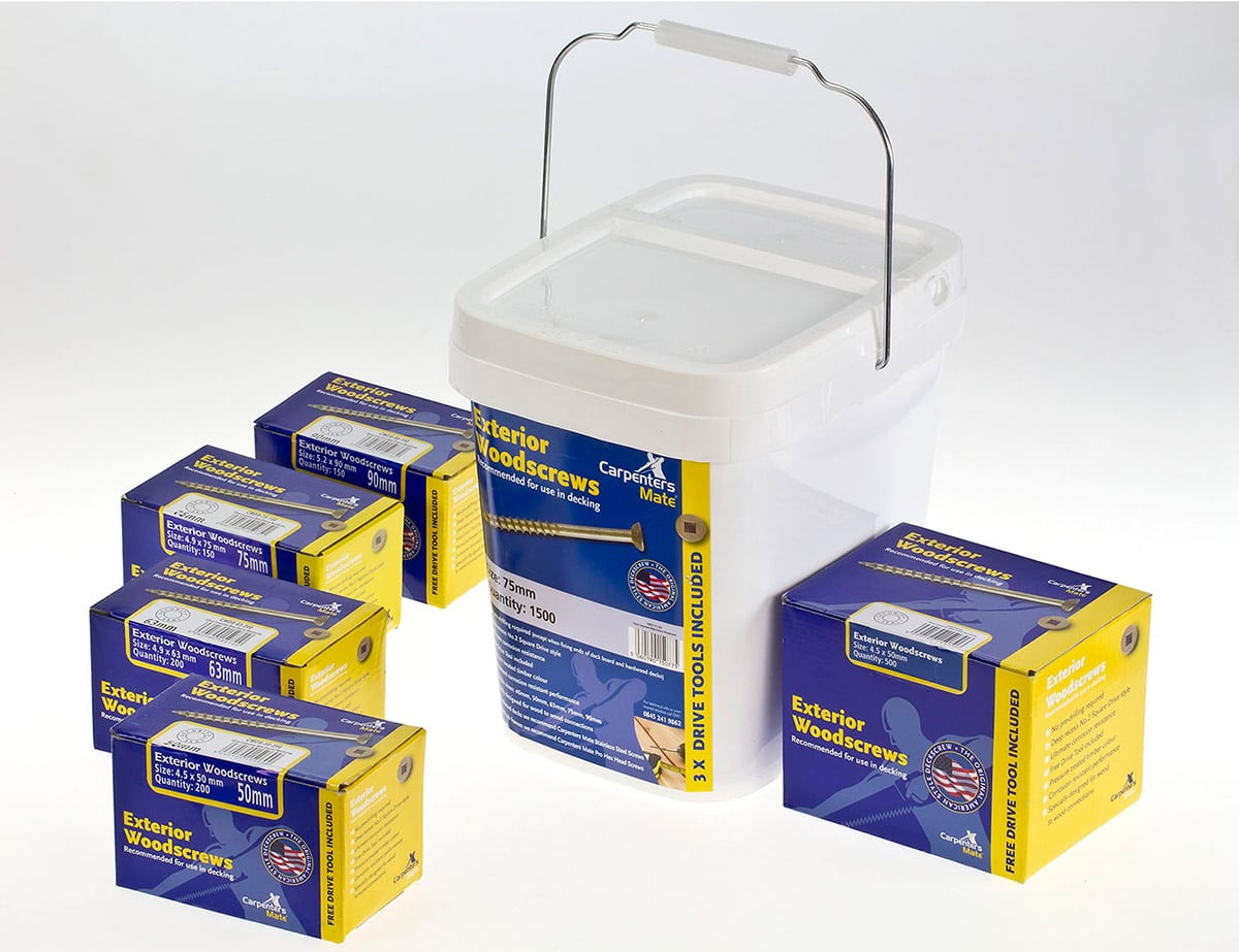 Carpenters mate's super-strong exterior wood screws feature a self-countersinking square drive head and are manufactured from the same corrosion-resistant carbon steel as our heavy duty Pro Hex screws, making them perfect for outdoor applications such as wooden decking.