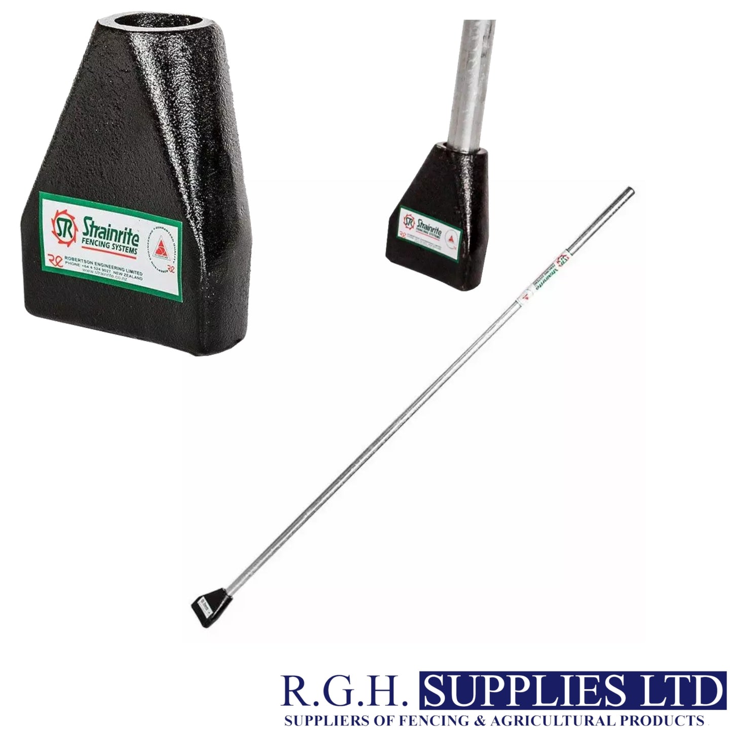 This post rammer has a post contoured cast iron foot and is 1630mm long with a galvanized handle and capped end